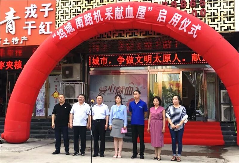 6月10日 正式启用 在太原市委市政府的高度重视下,在省、市卫健委和小店区人民政府的大力支持帮助下,为改变捐献机采血小板只能到血液中心的现状,方便太原市南部地区爱心市民就近捐献机采血小板及全血,从而提高无偿捐献机采血小板的知晓率和普及率,太原市红十字血液中心在坞城南路设立了“机采献血屋”,并于6月10日正式投入使用。太原市卫健委副主任赵宏英、血液中心主任白林、党委书记许虹、副主任周源、武俊文出席了启用仪式。