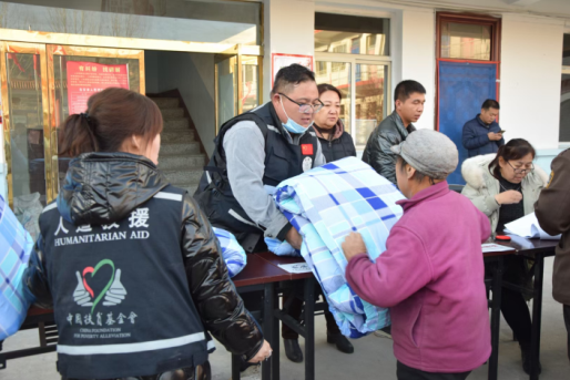 中国扶贫基金会人道救援发放救灾物资,当物资交到受灾老人的手中,他们额上那饱经风霜的皱纹似乎在这一瞬间舒展开来,一双眼睛眯成了弯弯的月牙,嘴角露出慈祥的微笑……