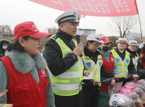 临汾交警协同文明交通志愿者进行122全国交通安全日主题宣传活动 华升 典平 11月30日