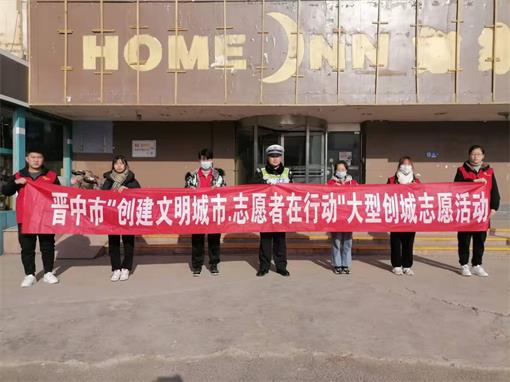 晋中高校志愿者参加创建文明城市.志愿者在行动大型创城志愿活动 晋中高校志愿者 12月15日