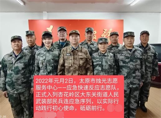 太原市烛光志愿服务中心应急志愿队正式入列大东关街道人武部 孟小平 1月3日
