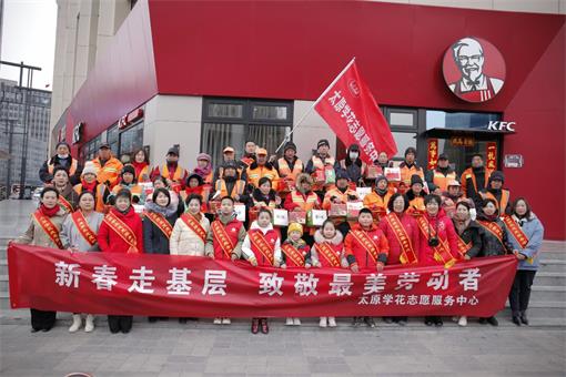 太原学花志愿服务中心的志愿者在大南门地铁口给环卫工人拜年 李学花 2月6日