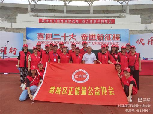 早上6:30,潞城区正能量公益协会在协会党支部的带领下准时到达潞城区体育场助力长治市潞城区2022年"全民健身日"系列赛事活动。