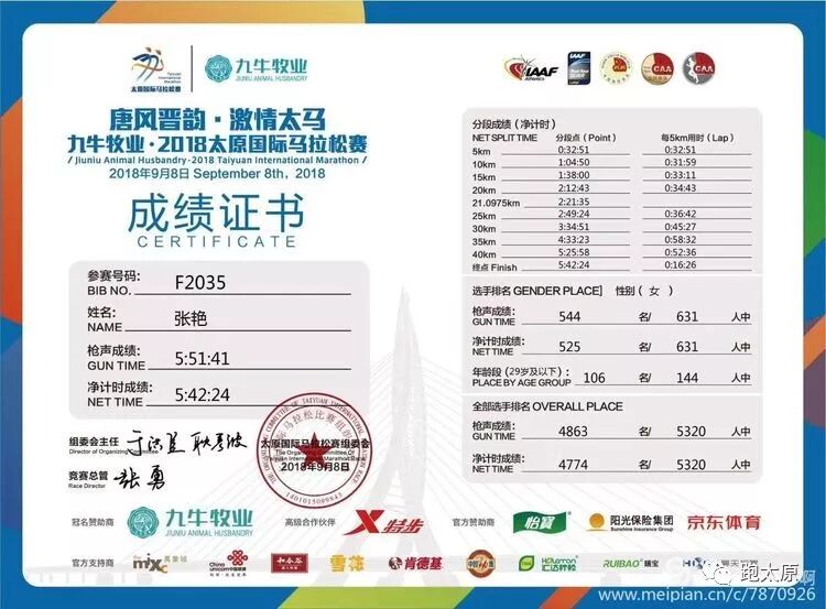 感受了:人生不只有前半段的春风得意也有后半段的苦楚艰辛。虽然人生不能重来,但马拉松还有下一场,比如刚刚报名的郑州马拉松。还是那句话,如果你想体验一下人生,那就去跑一场马拉松吧,用跑马的态度去过好一生,加油!!