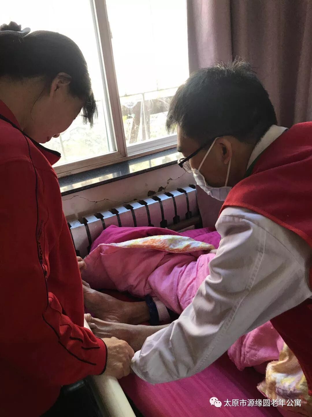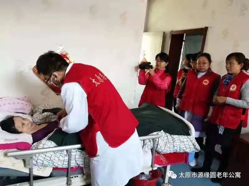 随后,专家们进入爷爷奶奶的房间,为卧床爷爷奶奶检查身体情况并向护理员了解他们平时的护理措施并提出了合理的建议。