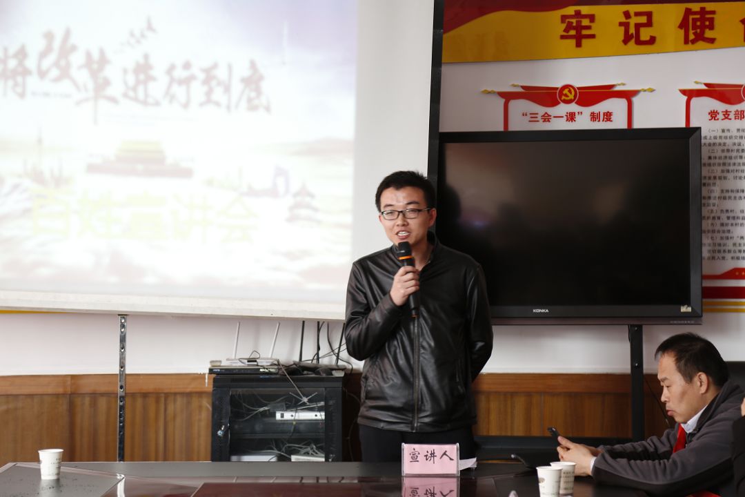 区委宣传部副部长、区新闻中心主任杨润德,区总工会兼职副主席、全国劳模郑翠生,团区委副书记刘烨,区妇联副主席常婷及罗城街办工作人员,村社两委干部,蒙山管理委员会,蒙山经营管理公司员工,金胜镇各村团员青年,新村村民及周边居民等基层干部群众130余人一同聆听宣讲。