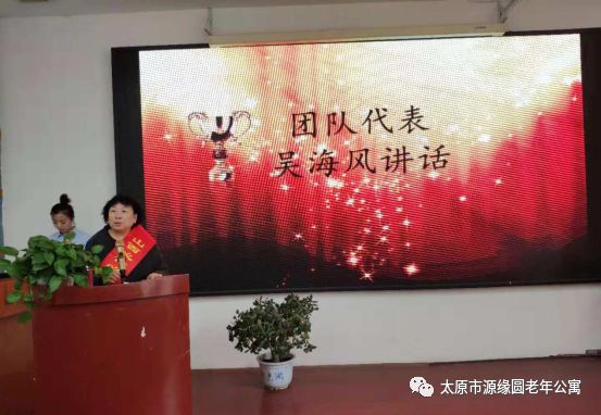 公寓奶奶鲁月英代表发言,她说:李院长就是我的亲闺女,老年公寓就是我的家,李院长心里常惦记老人,倾其半生心血打造人性化、亲情化、专业化的温馨家园,让老人们身暖心更暖,我们在这里很快乐,我们决定在这里安享晚年!