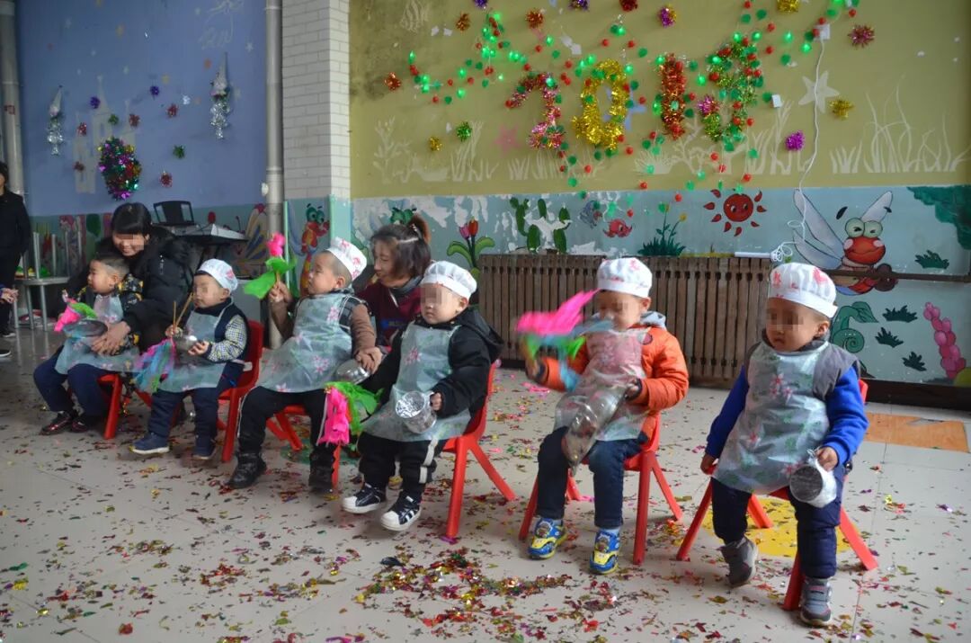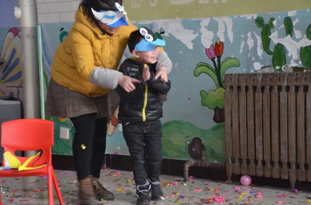 “砰,砰......”,随着声声礼花响,联欢会拉开了帷幕。踩踩,踩一踩,我们欢乐地踩气球,踩着气球,伴随着礼花响,迎接新年的到来。“叮叮当,叮叮当,铃儿响叮当......”,我们打起手鼓唱着歌,大龄星宝欢乐地打着非洲鼓,向我们展示着他们的风采。除此之外,他们还带来了哑铃操,手握哑铃跳个操,我们的星宝真是棒。“请问你是我的妈妈吗?”“傻孩子,我就是你的妈妈呀”。