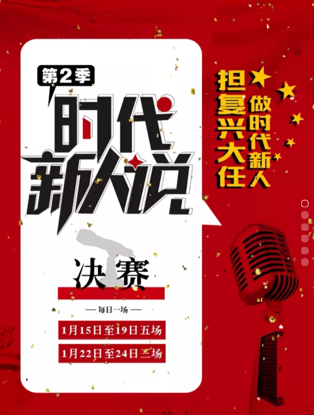 “时代新人说”第二季决赛同时是人民网“强国论坛杯——时代新人说”全国演讲大赛第一站(太原专场)的精彩亮相。本次决赛由人民日报社指导,人民网、中共太原市委宣传部主办,太原广播电视台承办,共青团太原市委、乐直播网络科技有限公司协办。2019年1月15日至24日,8场“时代新人说”第二季决赛深情开讲。人民网、中新网、新浪直播、腾讯视频、太原手机台、乐直播在线同步直播,56位评委打分、400名大众评审团激励、240名亲友团助阵、1600多名观众直击、乐直播网络投票,最终决出40名时代新人优秀宣讲者,并评出8位最佳讲述人。
