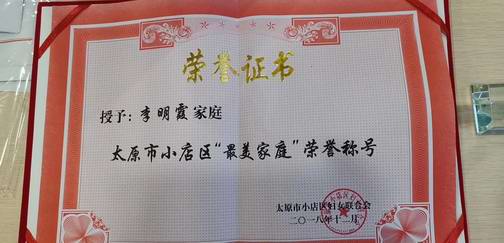 李明霞和爱人太原好人孟利军 荣获太原市小店区最美家庭称号