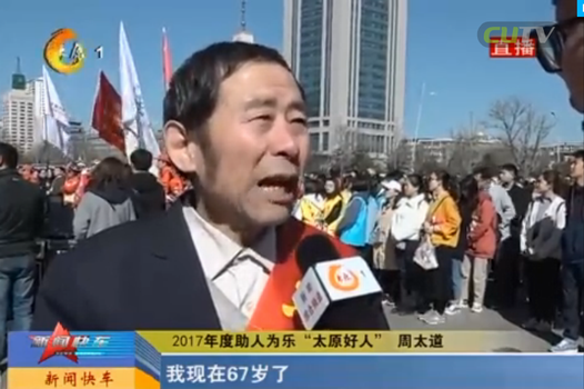 太原好人周太道在南宫国际社工日接受太原广播电视台采访