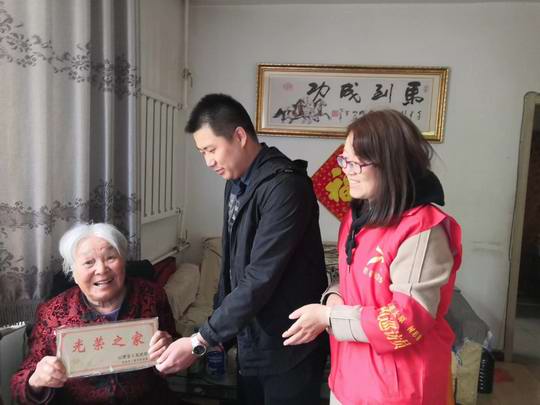 郭大红参加“光荣之家”牌匾的发放工作