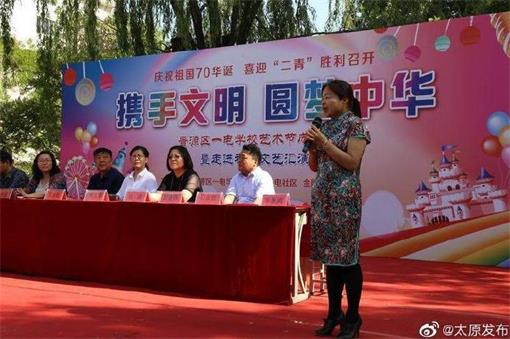 2019年5月31日上午,晋源区一电学校开展了艺术节成果展暨走进社区文艺汇演活动。2019年是祖国70华诞,正值“文明创城”、“双月攻坚”、“‘二青’”盛会举办之际,一电学校积极响应各界号召,将满腔热血融入到一句句的歌声中。