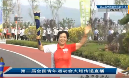 中华人民共和国二青会晋源站火炬手--中国好人陈秀苗。火炬接力结束后,陈秀苗说, 今天8月6日我带着激动的心情参加了中华人民共和国第二届青年运动会火炬手,第三十三棒,有幸的是晋源街办带着500人的拉拉队在助威,激动的心情,只有说感恩各级领导和老百姓对我的支持,家人的理解与鼓励,今天的一棒更会对我今后在工作中,尽心尽责,做好工作,百姓幸福了,我就开心了,百姓的脸上笑容多了,我就更快乐了,感恩一切帮助过我的人,更感恩伤害过我的人,让我更坚强的去做一个好人,鼓励自己一定要坚强。