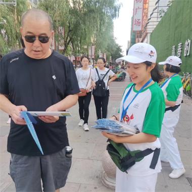 做好东道主,助力二青会,“龙城义工青圪蛋"精彩瞬间,发放宣传资料。
