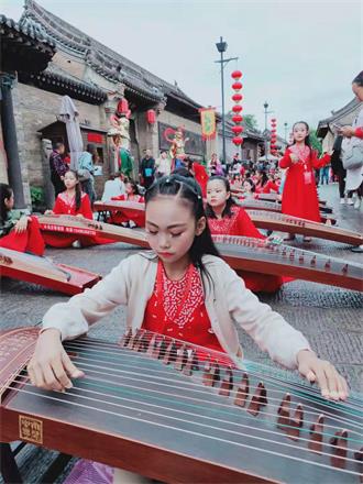 北中环小学张金林参加了青龙古镇千人古筝演出