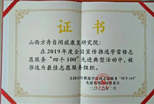 最高荣誉,好好收藏——2019年度全国学雷锋志愿服务“四个100”评选活动中,山西方舟被评为最佳志愿服务组织,受到中央文明办的表彰!