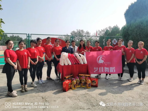 在天高云淡、秋风送爽的丰收季,“国庆”、“中秋”两节来临之际,源缘圆老年公寓迎来了太原市小店区艺佳舞蹈培训学校的志愿者团队,来公寓看望爷爷奶奶们奉献爱心,带来了精彩的节目及5袋米、4袋面、4桶油和4盒月饼等慰问品,因为秋冬季节是防控疫情的关键时期,活动地点选在了空旷的大院,让爷爷奶奶在安全、健康的环境下,享受精神大餐歌舞节目。