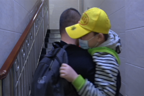 有了张旭龙的支持,小远武顺利从三年级升入四年级,教室也从二楼换上了三楼。张旭龙每天就是这样,抱着80多斤重的小远武,沿着224级台阶负重前行。