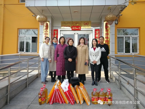 岁岁重阳喜,九九丹桂香。我们迎来了中华民族尊老敬老的传统节日--重阳节,太原市源缘圆老年公寓也迎来了晋源区统计局王军丽局长及李淑晶副局长,带领他们的爱心志愿者团队,来慰问公寓入住的退伍老兵及爷爷奶奶们,带来5袋米、5桶油及暖暖的爱心马甲,把中华民族“尊老、敬老、孝老、爱老、助老”的优良传统永远传承下去。