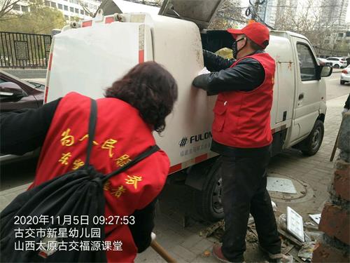 为创建文明卫生城市,让市民有个干净整洁的生活环境,2020年11月5日,东望山西太原古交福源课堂的志愿者应当地义学路社区邀请,来到古交市幼儿园附近清理垃圾。