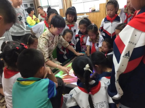 “孩子有童趣和强烈的表现欲,他们的喜怒哀乐跃然纸上,沙画则能让孩子以最放松的状态专注地投入并享受其中,在玩中学,在体验中感悟,通过沙画可以让孩子们变得认真而有耐心。画沙画的孩子,外表安静专注,内心却是自由、跳跃、灵动的。”朱霞说。