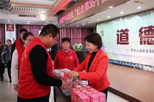 在最后的送吉祥环节,许虹书记为参加道德讲堂的志愿者和中心员工送出了小纪念品。