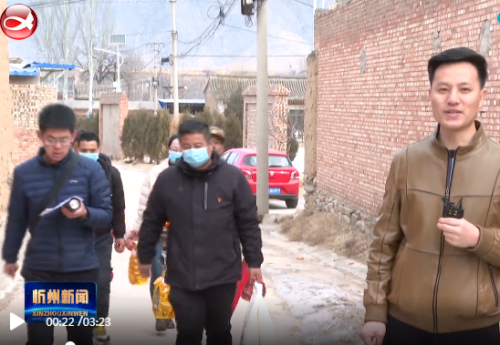 原平市贾庄村2020年全村脱贫,春节期间村干部慰问刚刚脱贫的村民。