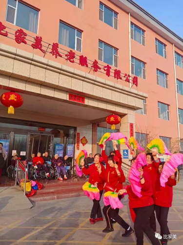 比家美养老服务有限公司的爷爷奶奶们,也同样欣赏着员工们热情洋溢的秧歌表演,感受着喜庆的节日氛围。