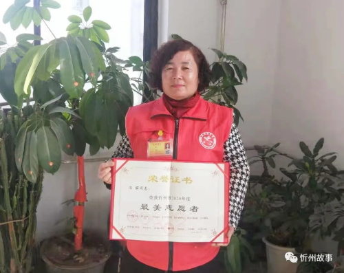 她是一名光荣的志愿者,叫冯丽。2020年荣获忻州“最美志愿者”。