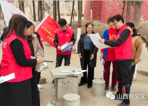 文基会志愿者走进临县沐浴社区发放党的政策宣传资料