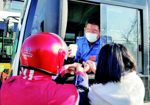 2021年3月21日上午8时许,103路电车驾驶员栾小刚开车返回车场,他刚将车停好,一份早餐便通过车窗递了进来。“这是一份爱心早餐,感谢你们为城市的付出。”一名志愿者笑着说。