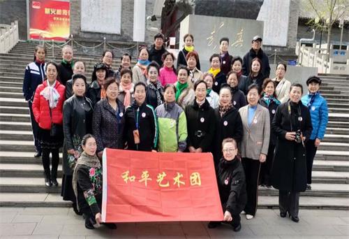 春风又绿汾河岸,2021年4月3日上午九点半,在清明节来临之时,太原市妇联锦绣姐姐广场舞团队约40余人胸前配戴着锦绣姐姐的徽章,在太原市儿童公园彭真纪念馆,参加了“传承红色文化,红心永远向党”主题活动。