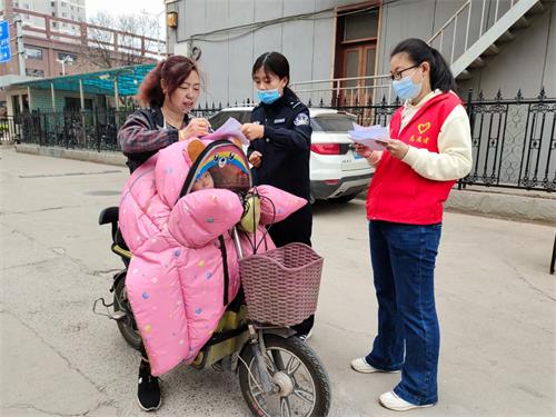 "反诈骗.我行动"晋中高校新区志愿者联盟派出青年志愿者,配合公安机关开展"春暖社区.全民反诈骗"志愿活动。