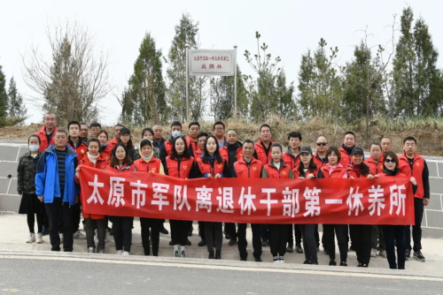 最后,大家共同在所栽种树苗区域插立“太原市军休一所及共建单位双拥林”标识,完成认种留念合影。