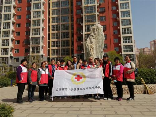 山西省红十字情缘爱心服务队组织志愿者去五龙花园清理垃圾