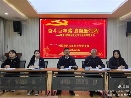 为庆祝中国共产党建党100周年,认真贯彻习近平总书记在党史学习教育动员大会上的重要讲话精神,我校积极响应党的号召,党支部书记王小六、校长乔丹及时组织召开全体教职工开展“奋斗百年路 启航新征程”建党100年党史学习教育部署动员大会。