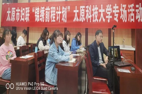 之后,市妇联在太原科技大学开启“锦绣前程”计划首场活动。“锦绣前程”计划是太原市妇联依托太原科技大学为省城范围内的女大学生量身定制的公益项目,通过开展各类培训、经验分享、社会实践等活动,帮助女大学生就业创业或继续深造,为她们今后全面发展搭建平台、寻找机会。首场讲座邀请了心理健康专家王晓光老师为女大学生带来讲座——做更好的自己。