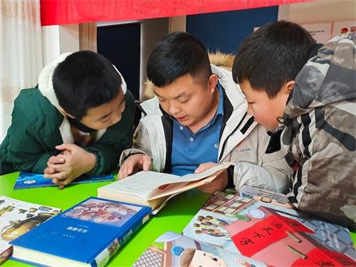 “四点半课堂”运营负责人刘辉与孩子们一块读书