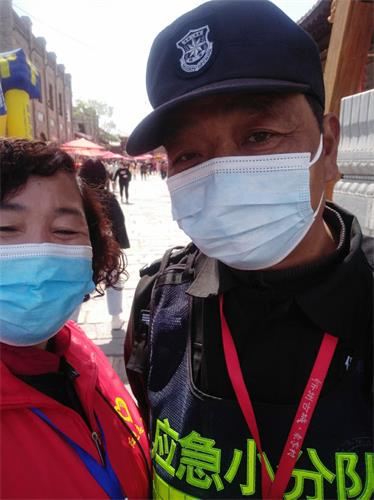 忻州志愿者冯丽到古城北广场给老百姓和游客免费发放口罩 忻州志愿者 5月1日
