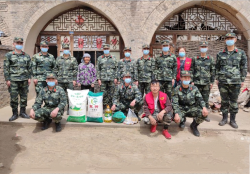 5月4日青年节这天,偏关武警携手兴瑞爱心公益协会关注慰问天峰坪村残疾人杨乃珍和他90多岁的老母亲。武警中队官兵迈着整齐的步伐带着白面、大米、胡油、西瓜等实物和爱心公益协会志愿者来到天峰坪村杨乃珍家送去了官兵和志愿者的一颗爱心。同时中队官兵还带着卫生清扫工具,铁锹、扫帚、脸盆、抹布等。