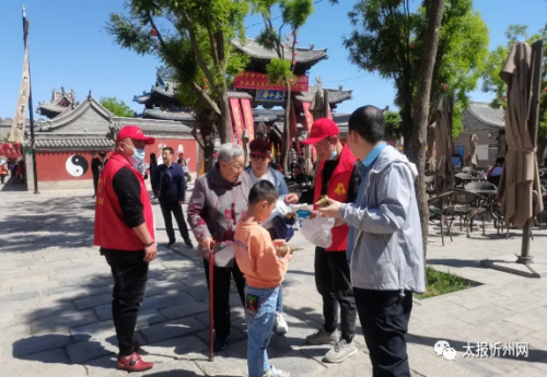 忻府阳光公益服务队走进忻州古城免费发放口罩为古城保洁 太报忻州网 5月6日