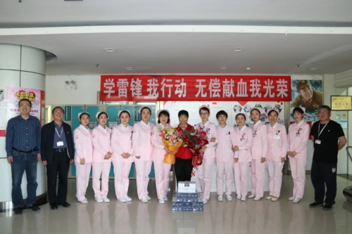 表彰大会后,中心领导班子为一线护士送鲜花、送温暖。并肯定了护理工作在无偿献血中发挥的重要作用,鼓励大家在新形势新发展时期,要勇于面对压力和挑战,克服困难,齐心协力,以更高标准要求服务,再创佳绩。