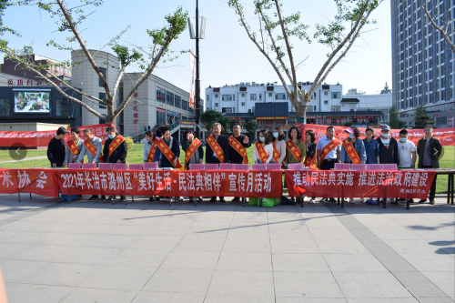 在民法典颁布一周年即将来临之际,为深入落实市委常委、区委书记胡勇同志提出的“立足岗位办实事,换位思考解民忧”工作要求,5月17日下午,区委守法普法协调小组组织区相关部门40家约60余人,在英雄中路街道办事处的大力配合下,在英雄台城市广场启动民法典宣传月活动仪式,标志着潞州区“美好生活·民法典相伴”宣传正式拉开帷幕。区委宣传部、区委政法委、区司法局领导出席本次启动仪式。