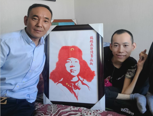 张旭飞做雷锋画像赠送给道德模范陈勇表示感激 6月20日