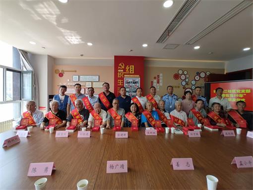 长治路二社区组织志愿者给光荣在党50年老党员发纪念奖章