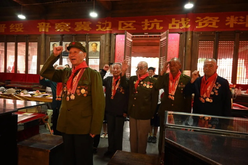 忻州籍7名抗日战争老兵参观图片展并为少先队员讲述红色革命故事 张志远 7月3日