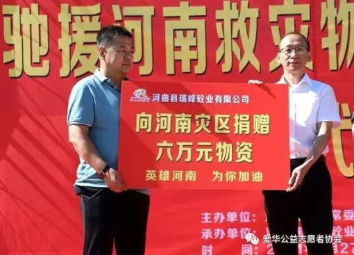 河曲爱华公益志愿者协会 瑞峰砼业有限公司为河南捐赠抗洪救灾物资 杨朝霞 7月29日