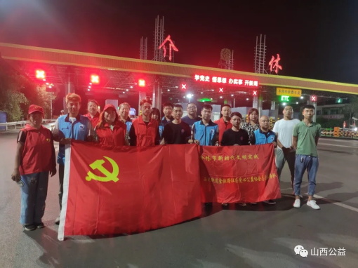 物资平安到达一线受灾地区后,大家于7月28日凌晨3:30返回介休,一下高速,志愿者们就受到亲友们的夹道欢迎,庆祝勇士们平安回家。