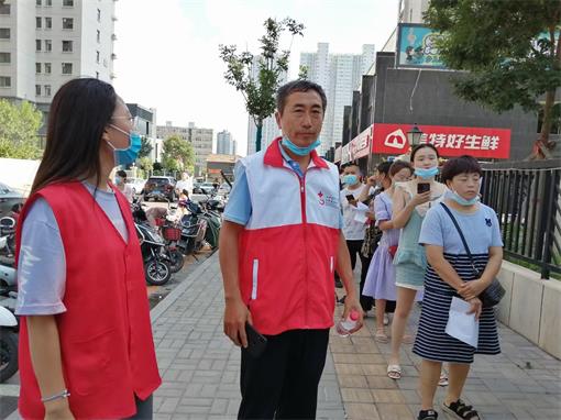 8月1日,山西省红十字情缘爱心服务队队长张建中带领志愿者去绿景未来城,鑫四海花园维护打疫苗秩序。